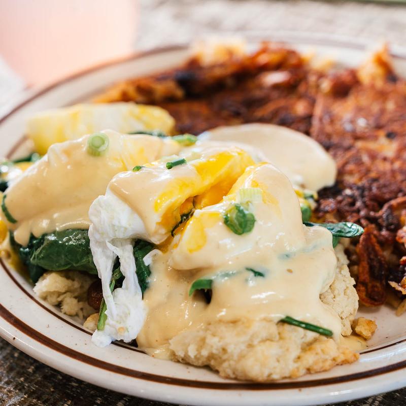 Now this place is dynamite. The pancakes and waffles both have the most amazing batter recipe. I absolutely love everything I had including the eggs Benedict and not to mention the service was super attentive. 5 stars all around..